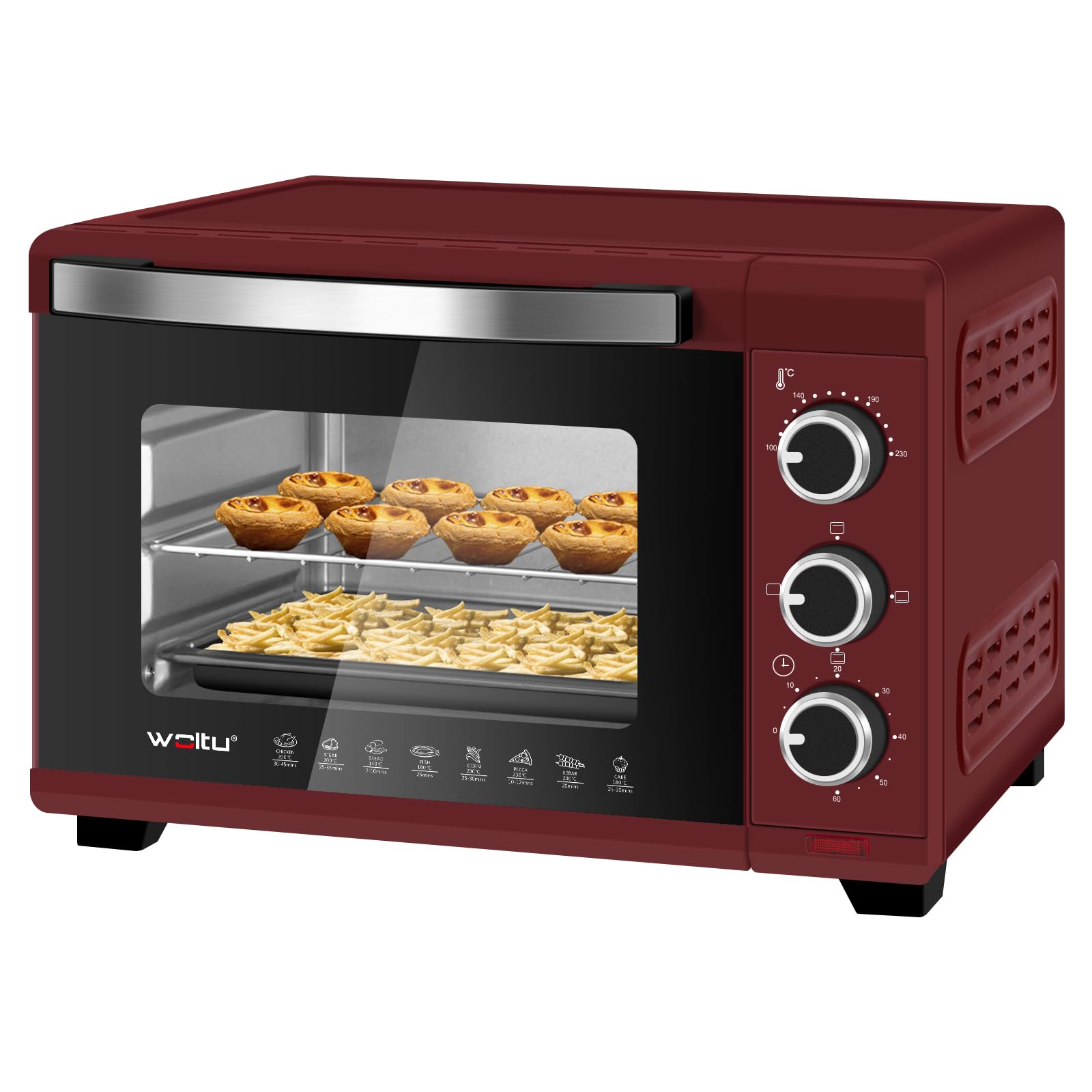WOLTU Mini Backofen 21 L, elektrischer Minibackofen, Miniofen, Pizzaofen, 1280 W, 100-230 °C, Timer 60 Min., Ober-/Unterhitze, Doppelverglasung, Rot